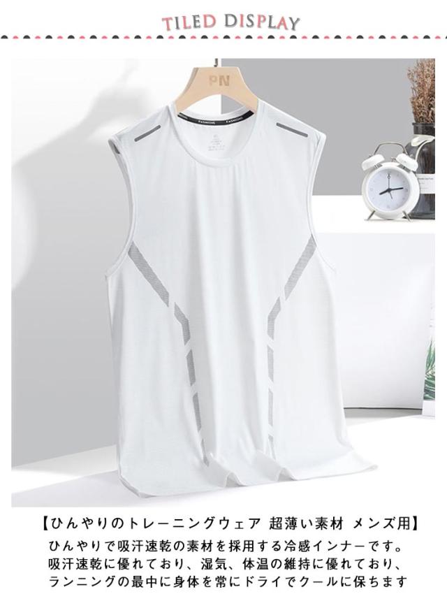 冷感 タンクトップ メンズ スポーツ インナーシャツ アイスシルク 夏用 ひんやり 下着 シームレス 接触冷感 アンダーウェア 涼しい 夏物 tシャツ 運動着 トレーニング 部屋着 バスケ スポーティ 抗菌防臭 吸汗速乾 肌着 伸縮性 黒 白 大きいサイズ 送料無料