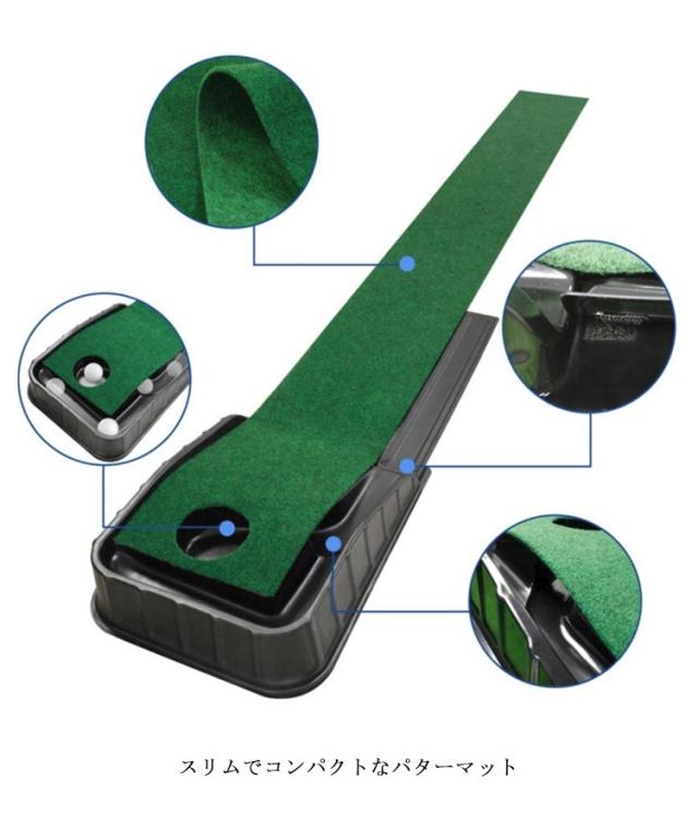| いつでもどこでもパッティング練習可能 スリムでコンパクトなパターマット 自宅の廊下などちょっとしたスペースで練習がしやすいサイズ。 お家や旅行先、コース前など空いた時間に練習・調整ができます。 | |