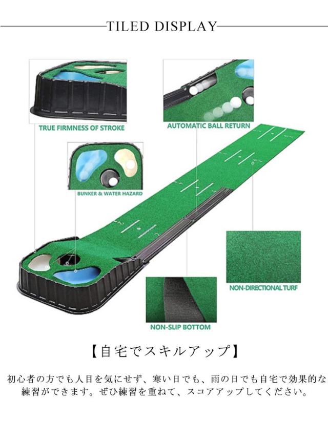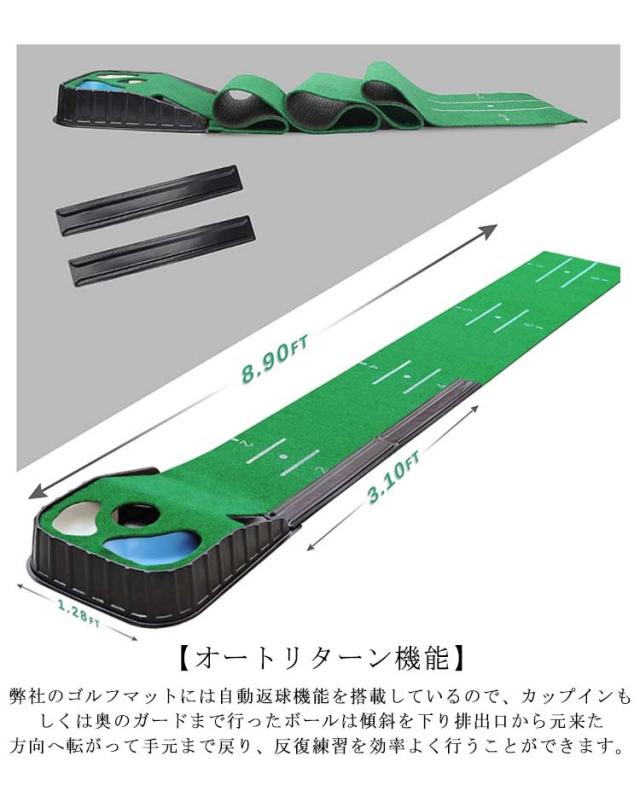 自動返球 パターマット ゴルフ パター練習 2.7m ライン付き 返球機能付き ゴルフ練習マット パッティング練習 ゴルフ練習 ゴルフ マット 傾斜 練習器具 パター練習器具 室外 室内 持ち運び便利 洗える ウォッシャブル 【送料無料】