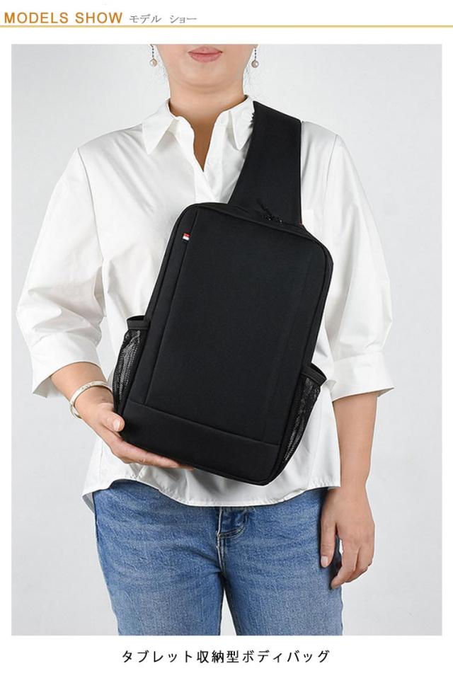 | ・見た目以上の収納力! ・タブレット収納型ボディバッグ ・タテ型のワンショルダーモデル ・10インチタブレットを収納できます。 ・収納ポケットも多く、様々な所に工夫が隠れております。 | |