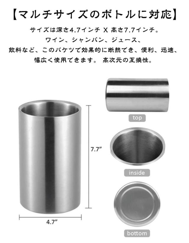 | 【効率的な断熱、保冷】ステンレススチール二層断熱ワインチラーは、氷不要の断熱クールバケツです。 二層構造壁は、効果的にバケツの内側と外側の温度を隔離し、飲み物をの温度に保ち、ワイン、の味を楽しめます。 【304ステンレススチール】断熱ワインチラーは304ダブルレイヤーステンレス鋼で鍛造されています。 頑丈で耐久性があり、高効率で連続的な断熱性があります。 お手入れ簡単、錆や腐食を防ぎ、食品や飲料の安全を確保します。 【マルチサイズのボトルに対応】 サイズは深さ4.7インチ x 高さ7.7インチ。ワイン、シャンパン、ジュース、飲料など、このバケツで効果的に断熱でき、便利、迅速、幅広く使用できます。 高次元の互換性。 【アイスキューブ不要、便利】過剰な氷が濡れる心配はありません。面倒な手順を処理する必要はありません。 冷蔵ワインや飲み物を冷やしたバケツに直接入れてください。水滴が多すぎず、清潔で便利です。 | |