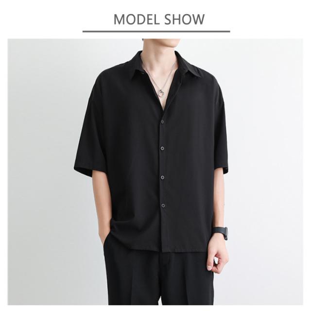 半袖シャツ メンズシャツ 五分袖 薄手 夏用 ゆったり 韓国ファッション カジュアルシャツ 開襟シャツ 通勤 通学 トップス 無地シャツ サマートップス 大人カジュアル きれいめ おしゃれ 快適 柔らか 軽量 半袖トップス 黒 白 グレー