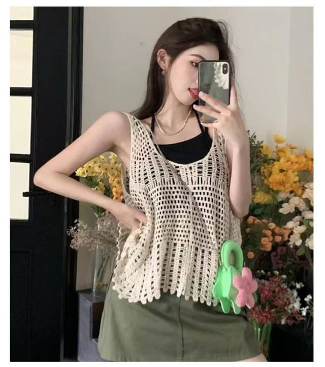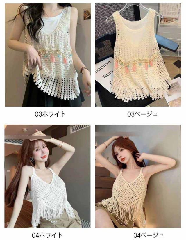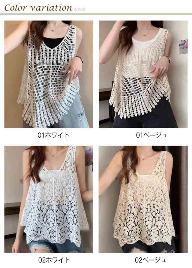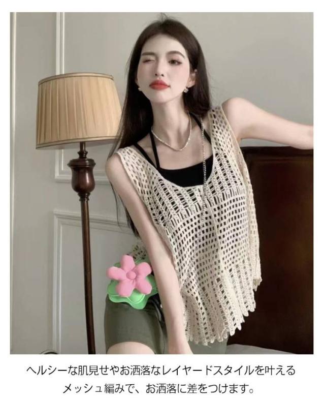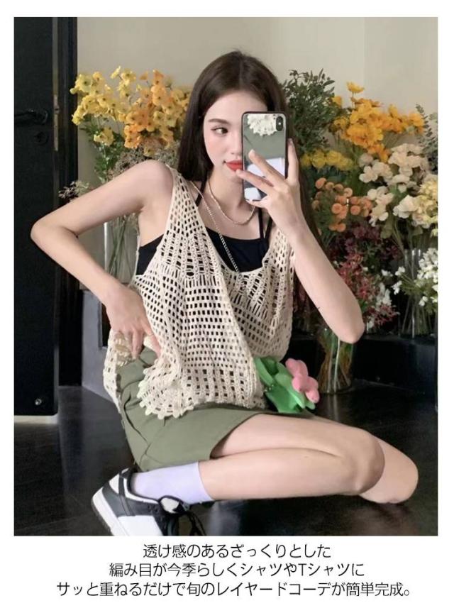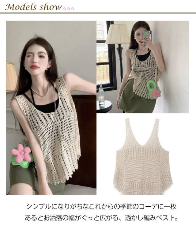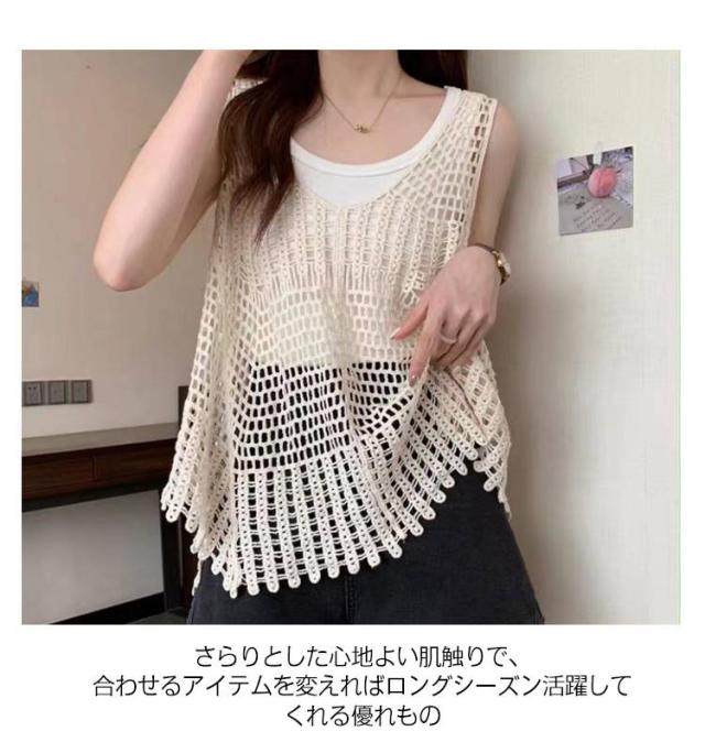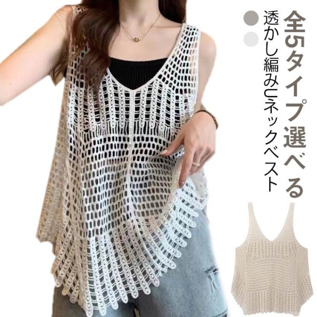 全5タイプ ベスト レディース 春夏 クロシェ編み トップス 透かし編み Uネック プルオーバー Vネック かぎ編み カジュアル 無地 レイヤード ニットベスト トップス きれいめ カジュアル レイヤード