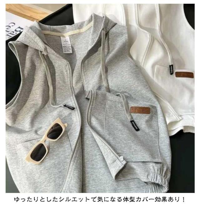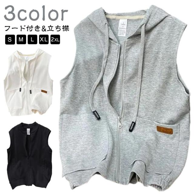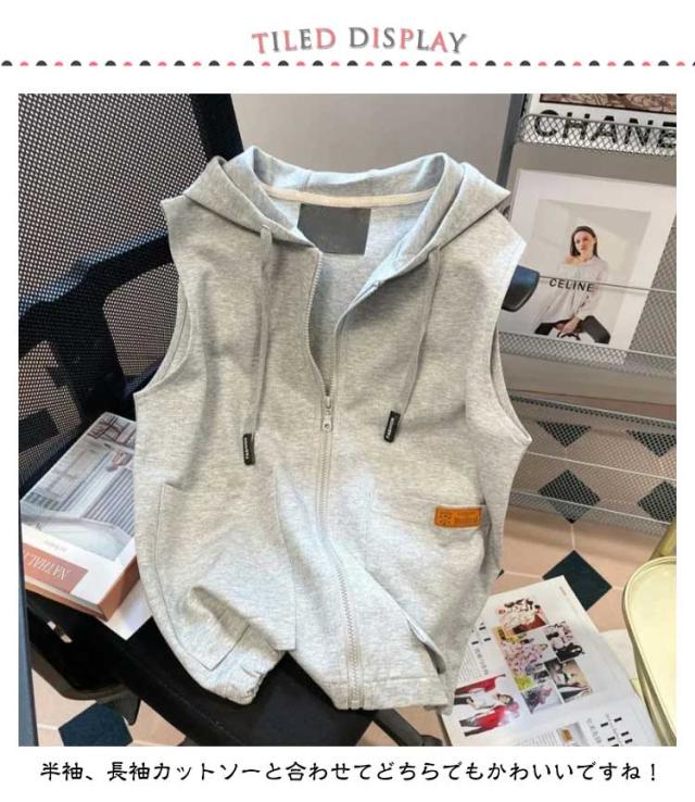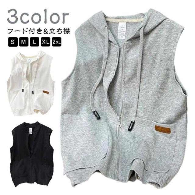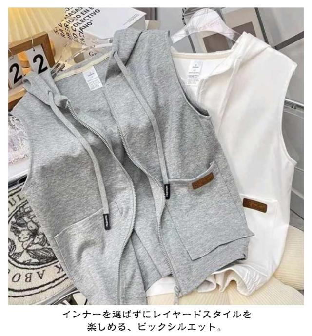 パーカーベスト フード付き スウェット 重ね着 ベスト レディース ノースリーブパーカー ノースリーブ タンクトップ Tシャツ カジュアル 春 夏 秋 薄手 レイヤード ゆったり カジュアル アウター プルオーバー 無地 お出かけ 大きいサイズ 送料無料