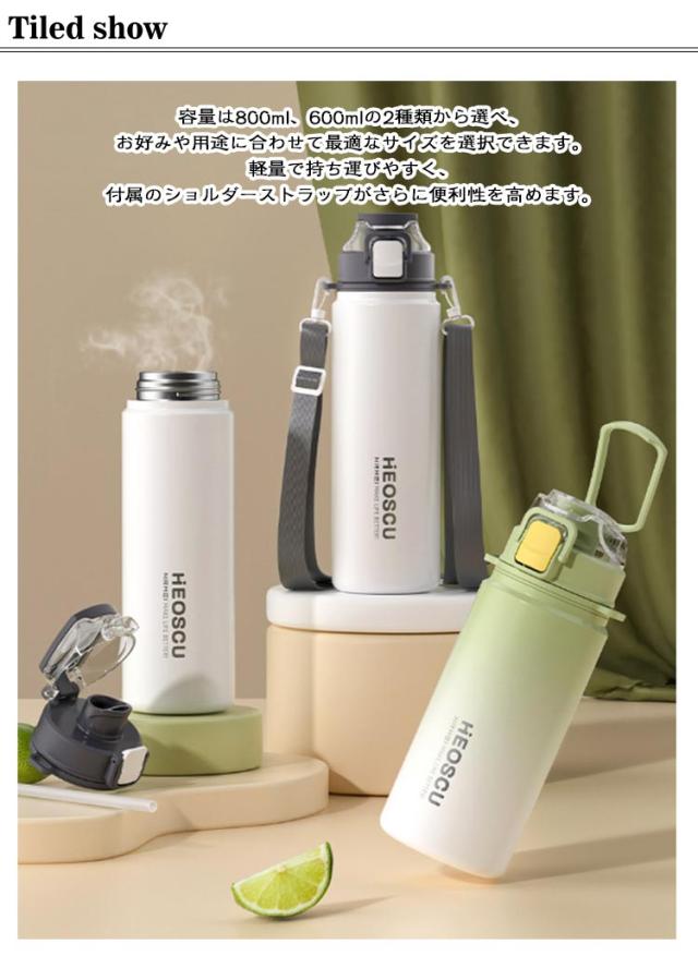 | ストロー/直飲み2way可能な真空ステンレスボトル。【800ml&600ml】 容量は800ml、600mlの2種類から選べ、お好みや用途に合わせて最適なサイズを選択できます。軽量で持ち運びやすく、付属のショルダーストラップがさらに便利性を高めます。 真空断熱技術により、飲み物を長時間冷たくまたは温かく保つことができるため、運動時や旅行、通勤通学に最適です。 洗いやすい広口設計で、いつでも清潔に保てるのも魅力の一つです。 シンプルで洗練されたデザインは、メンズ、レディース問わずお使いいただけます。 おしゃれを楽しみながら日々の水分補給を助けるアイテムです。どんな場面でもあなたのライフスタイルをサポートし、常に最高のパフォーマンスを発揮させてくれるでしょう。 | |
