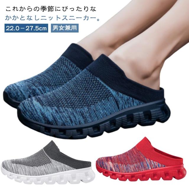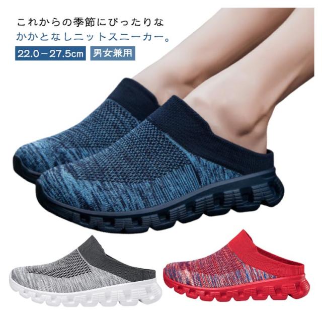 かかとなし スニーカー サンダル ニット メッシュ サボサンダル レディース メンズ スニーカーサンダル メッシュスニーカー かかとなし スリッポン シューズ 靴 春 夏 防滑 通気性 スリッパ 軽い 外履き 部屋履き ベランダー履き