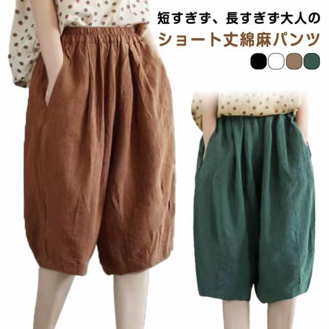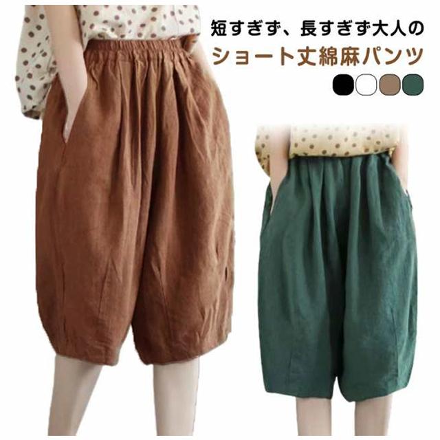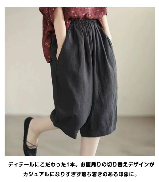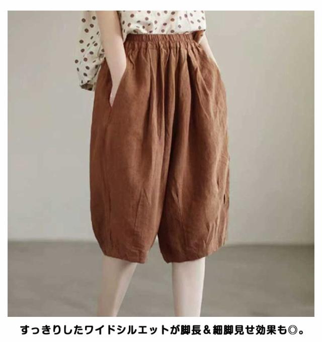 ハーフパンツ サルエルパンツ 5分丈 レディース ガウチョパンツ ショートパンツ サルエル パンツ 綿麻 リネン アラジンパンツ ワイドパンツ バルーンパンツ コクーンパンツ ボトムス きれいめ ウエストゴム 春 夏 大人 送料無料