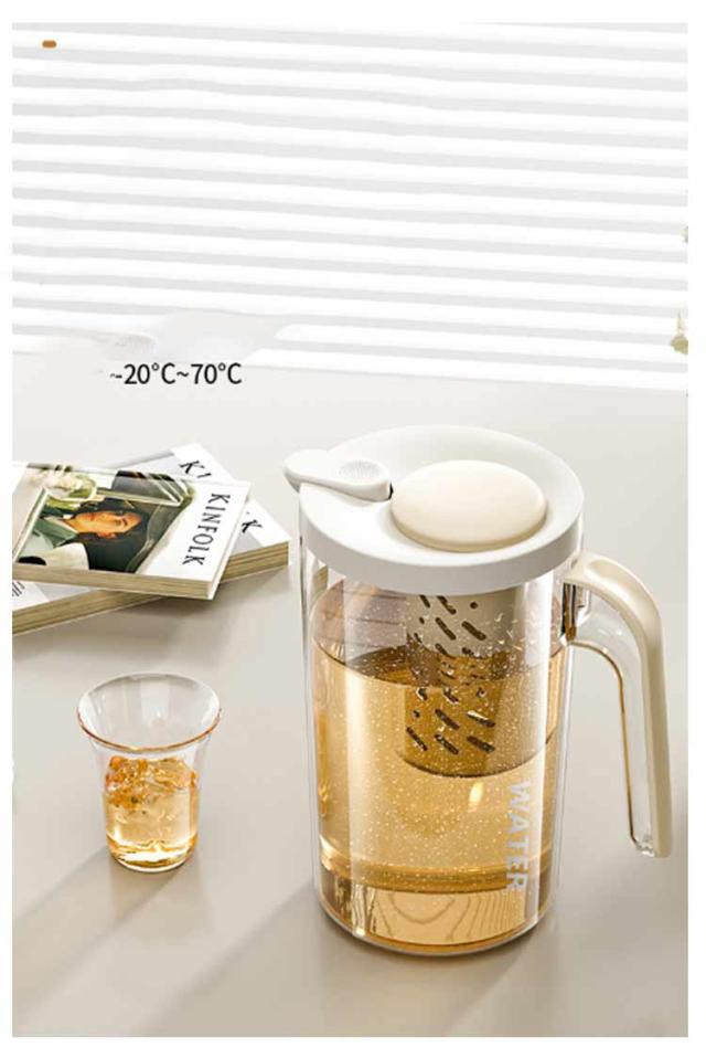 | 毎日使いにピッタリな大容量ピッチャー 様々なテーブルシーンにもあうシンプルなデザインです 広口設計で隅々までしっかり洗え、部品が少ないので組み立ても簡単で扱いやすいです。 茶こし付きなので、手軽に冷茶を作ることができます。 冷蔵庫のドアポケットと野菜室に収まりやすいです。 | |