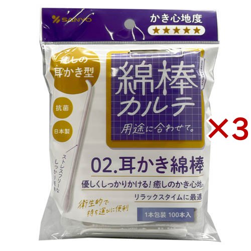 綿棒カルテ02.耳かき綿棒(1本包装)(100本×3セット)[綿棒 分包]