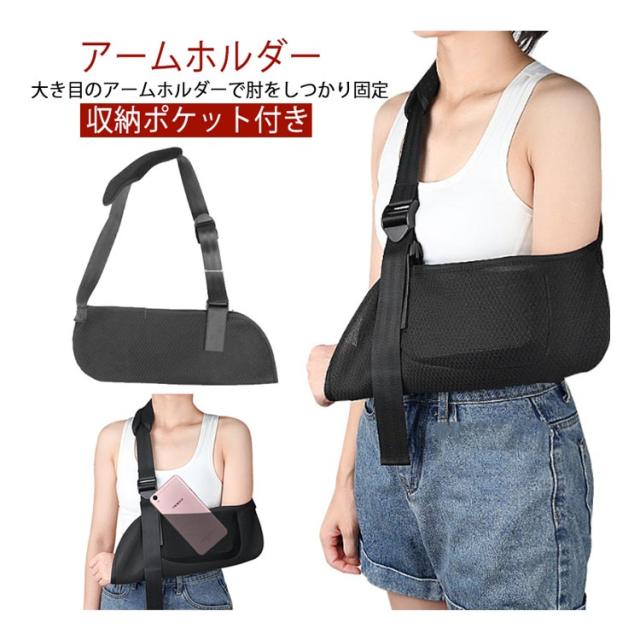 アームホルダー 腕吊り サポーター アームスリング 腕用 サポーター アームリーダー 大人用 子供用 三角巾 腕つり 骨折 アームホルダー ポケット付 子供用 男女兼用 左右兼用 バンド ブラック 腕 送料無料