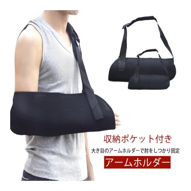 アームホルダー アームスリング 腕吊り サポーター 腕用 サポーター アームリーダー 大人用 子供用 三角巾 腕つり 骨折 ポケット付 アームホルダー 子供用 男女兼用 左右兼用 バンド ブラック 腕 送料無料