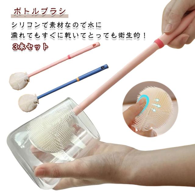 ロング キッチンブラシ ブラシ 食器洗い用ブラシ 水筒 ロングハンドル シリコン グラス 3本セット マグボトル スポンジブラシ 回転 ボトルブラシ ハンドル 哺乳瓶 ミルクボトル 3本セット 抗菌 キッチン 水筒 ガラス グラス コップブラシ 魔法瓶 ボトル洗い