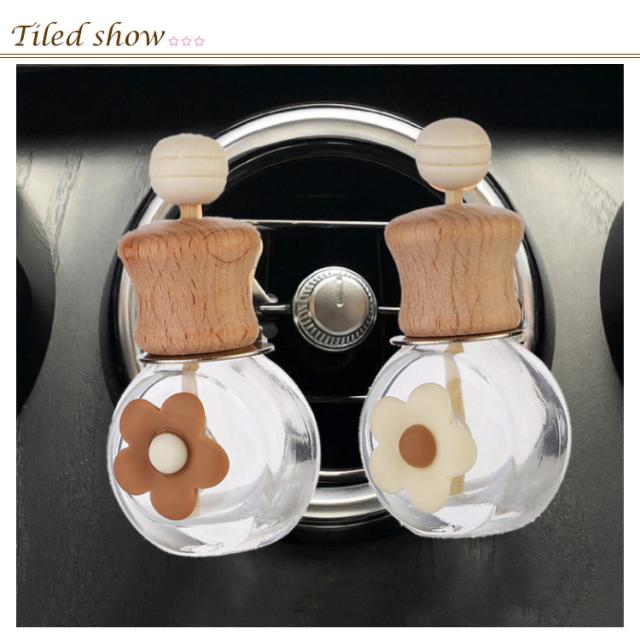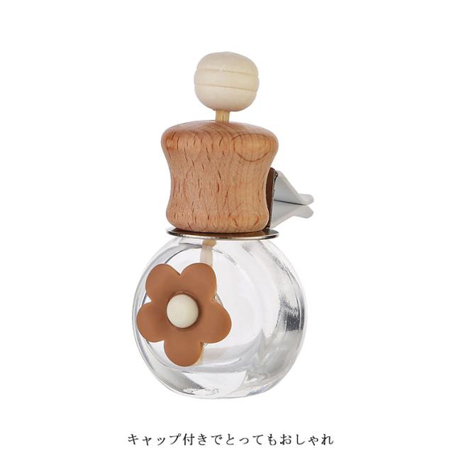 カー用品 花 ボトル カーアクセサリー 芳香剤 【5個セット】車用香水瓶 ブラウン 【5個セット】車用香水瓶 花柄 リボン柄 ハート柄 おしゃれ ガラス瓶 クリップ カーディフューザー ホワイト アロマ エアコン送付口