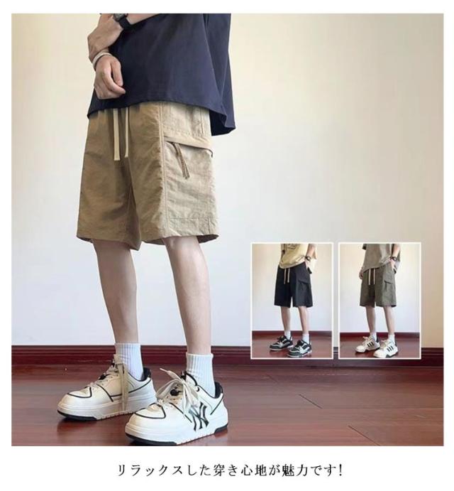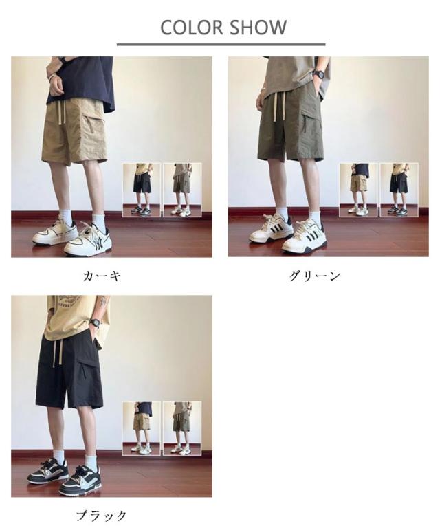 | 夏場のカーゴパンツ、シンプルでスタイリッシュ。 ウエストは楽ちんゴム仕樣、紐で調整可能。 リラックスした穿き心地が魅力です! 通勤、スポーツ、旅行などさまざまな場面に適しています。 | |