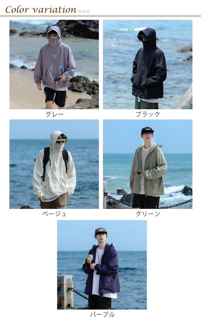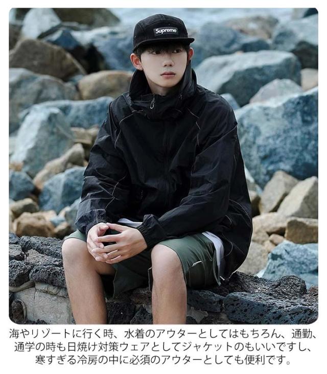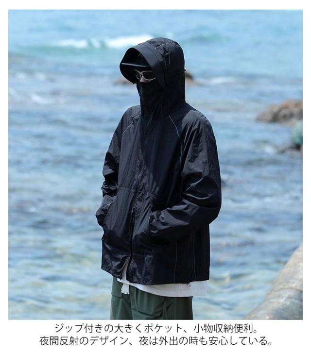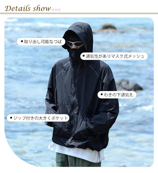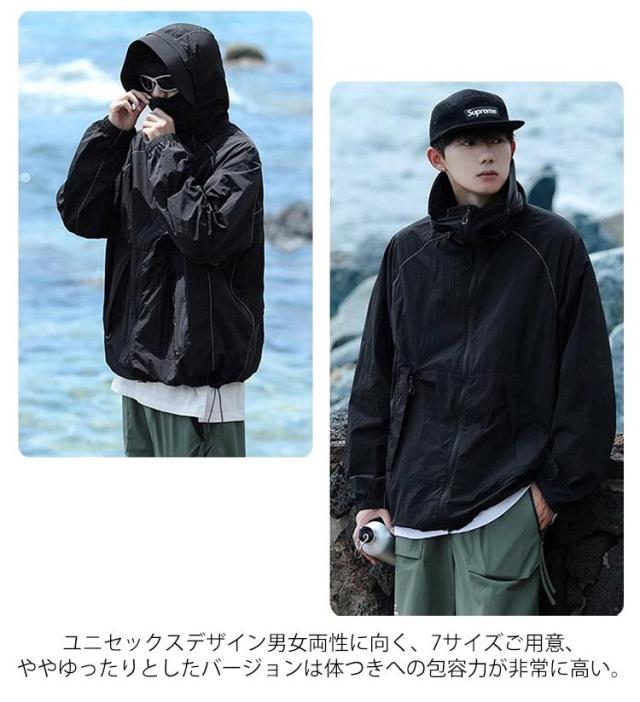 | フード付きuvカットパーカー/男女兼用/大きくつば 取り出し可能な大きくつば、uvカット効果も抜群! ファスナーを閉じると鼻まですっほり包み込み、顔・首元を紫外線からしっかり守ります。 通気性と速乾性に優れな生地を使用、汗ばむでも蒸れません。生地は防水なので、小雨が降っても大丈夫です。 ジップ付きの大きくポケット、小物収納便利。夜間反射のデザイン、夜は外出の時も安心している。 海やリゾートに行く時、水着のアウターとしてはもちろん、通勤、通学の時も日焼け対策ウェアとしてジャケットのもいいですし、寒すぎる冷房の中に必須のアウターとしても便利です。 ユニセックスデザイン男女両性に向く、7サイズご用意、ややゆったりとしたバージョンは体つきへの包容力が非常に高い。 | |