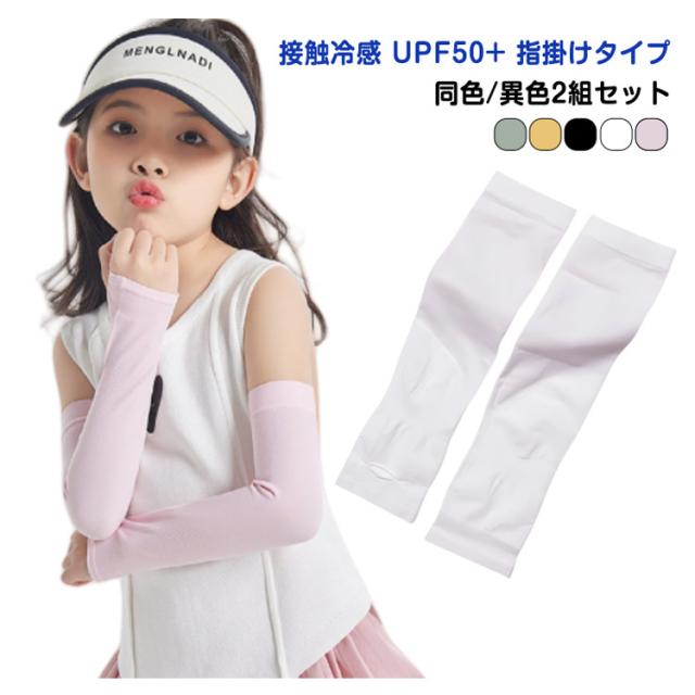 冷感 UPF50+ アウトドア 同色/異色2組セット アームカバー キッズ 同色/異色2組セット UVカット 腕カバー おしゃれ 接触冷感 袖カバー 可愛い 子供 ロング丈 指穴 あり 女の子 男の子 手袋 UV手袋 スポーツ 日焼け防止 外遊び 海水浴 夏 夏用