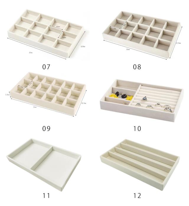 ベロア調 全12タイプ 小物入れ アクセサリーケース ジュエリー収納 アクセサリートレイ 仕切り付き ネックレス リング 指輪 ピアス イヤリング 全12タイプ 収納ケース