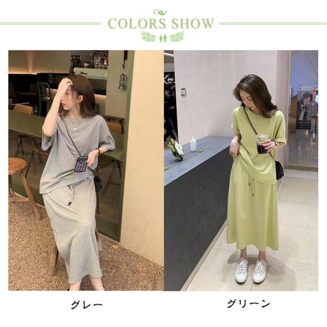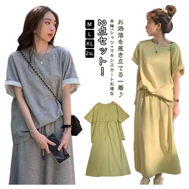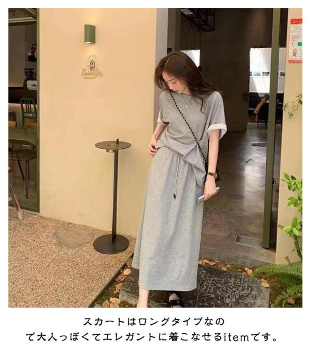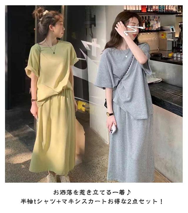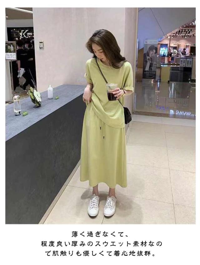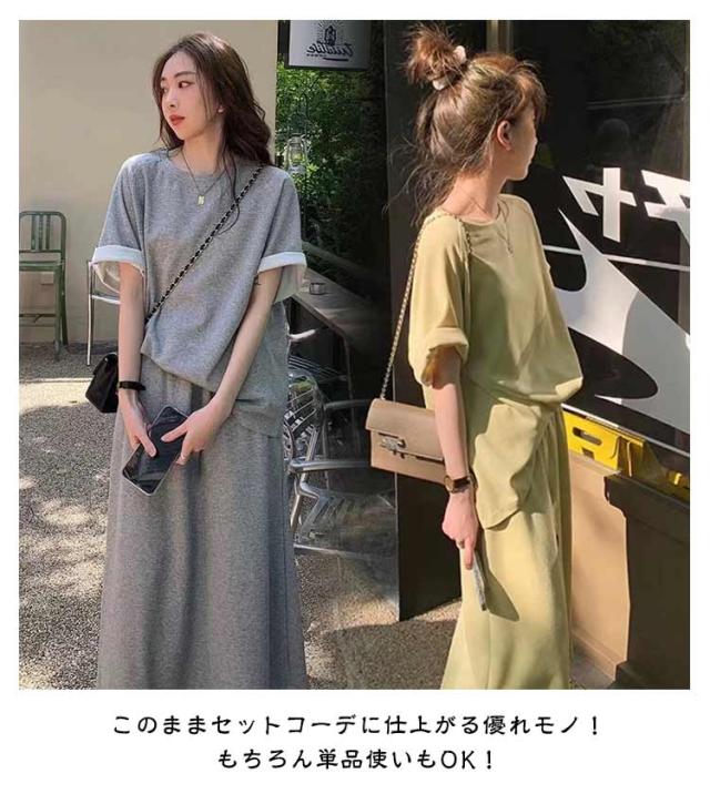 折り返し袖 半袖tシャツ レディース 夏用 【送料無料】スウェット 韓国ファッション 2点セット おしゃれ 半袖 秋 トップス 【送料無料】スウェット セットアップ ルームウエア 部屋着 春 スカート 夏 大きいサイズ ロングスカート 普段着 カジュアル