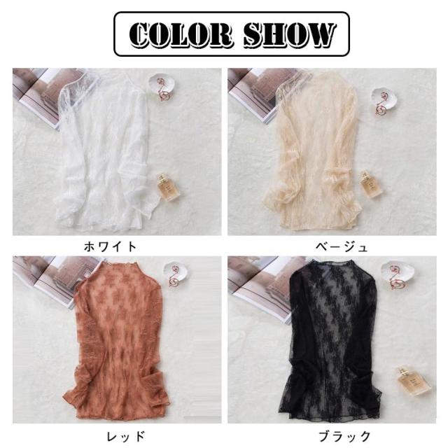 トップス シースルー 透け感 レディース インナー シースルー ブラウス フェミニン シースルーブラウス 春 レース 肌見せ 重ね着 透け 大人 長袖 セクシー 無地 可愛い セクシー 夏 秋 冬 普段着 おしゃれ 20代 30代