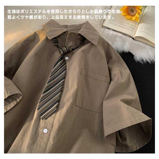 半袖シャツ 半袖 シャツ 半袖 カジュアルシャツ オーバーサイズシャツ メンズ ネクタイ付き ボウタイシャツ 夏 メンズ ストレッチ 半袖シャツ カジュアル 涼しい 五分袖 韓国 ファッション ゆったり シンプル