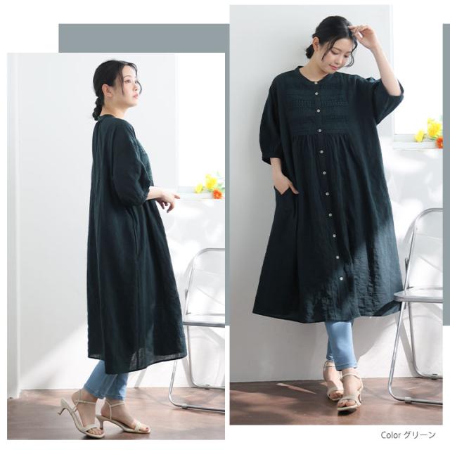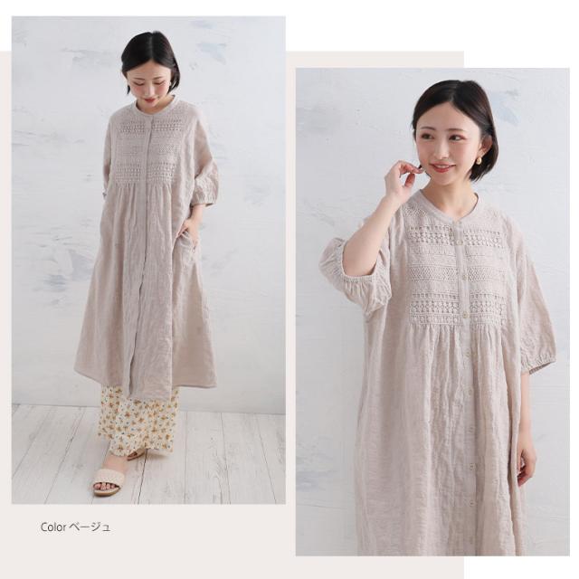コットン100%の優しい風合いのワンピース ふんわりぽわん袖で二の腕もカバー体型別コメント