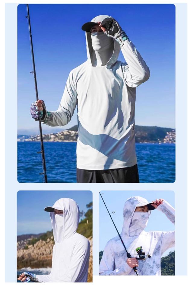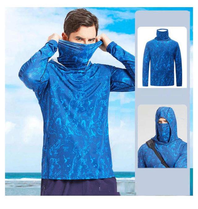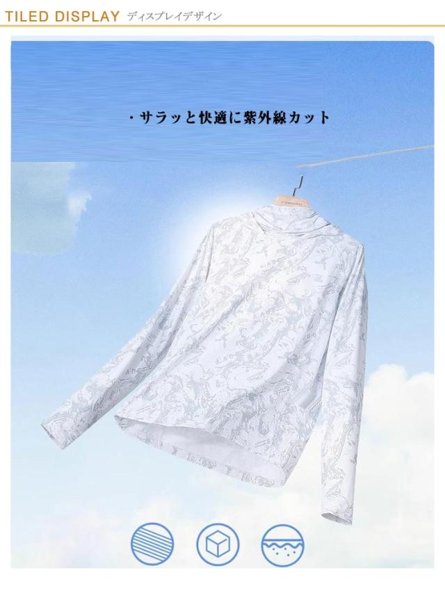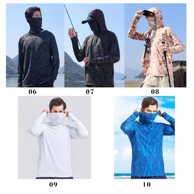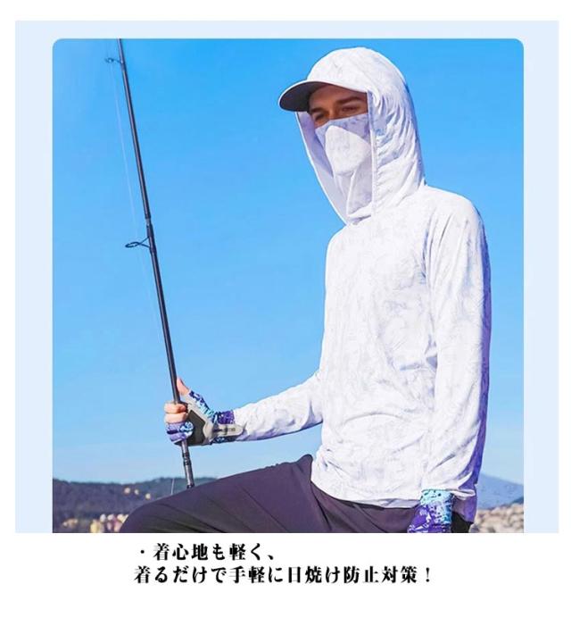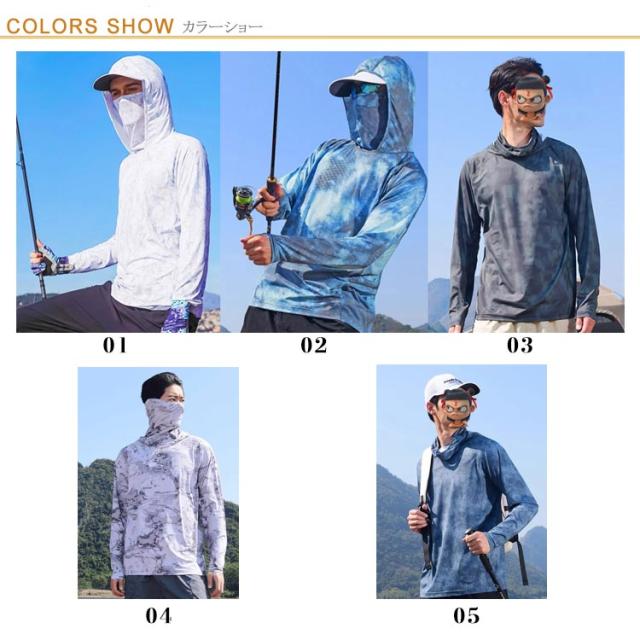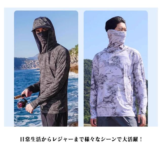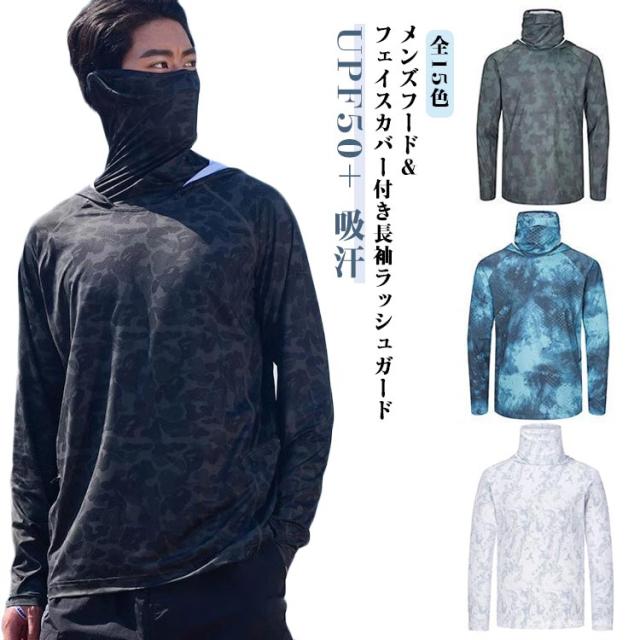 長袖 ラッシュガード メンズ UPF50+ 吸汗 フェイスカバー ネックカバー Tシャツ 速乾 フード付き 涼しい アウトドア スポーツ 登山 キャンプ 海水浴