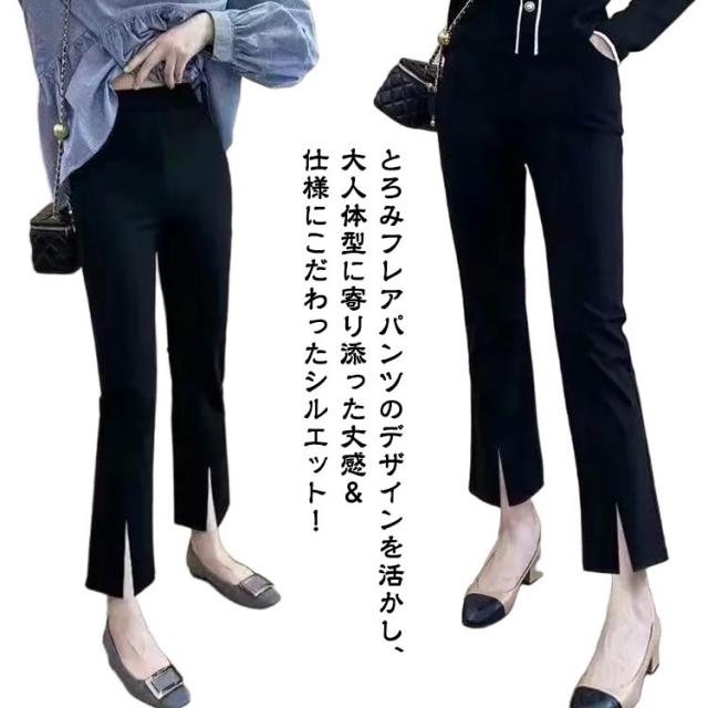 フレアパンツ レディース 9分丈パンツ ハイウエスト スリットパンツ 涼しい ロングパンツ ボトムス 前スリット サイドスリット ハイウエス クロップドパンツ セレモニー 着痩せ 美脚 楽ちん きれいめ 春夏 通勤 オフィス 大きいサイズ 母の日 ギフト