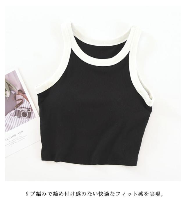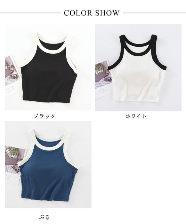 カップ付き 肌着 レディース ノースリーブ 重ね着 タンクトップ ホルターネック 伸縮性 下着 インナー キャミソール ダンス スポーツ トップス 無地 お洒落 配色 タンクトップ 部屋着