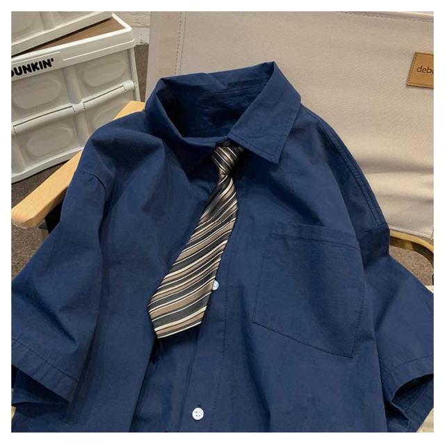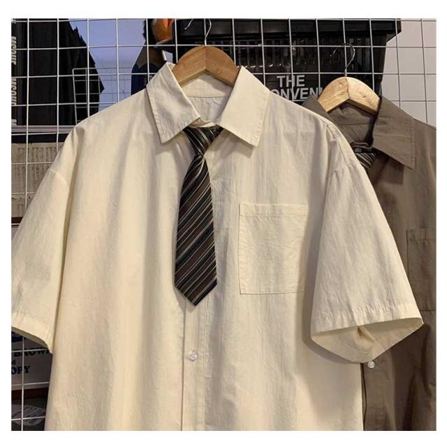 半袖シャツ 五分袖 メンズ シャツ シャツ 半袖シャツ ストレッチ 半袖 半袖 夏 カジュアルシャツ オーバーサイズシャツ ネクタイ付き カジュアル 涼しい ボウタイシャツ 韓国 ファッション ゆったり シンプル