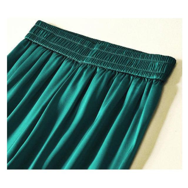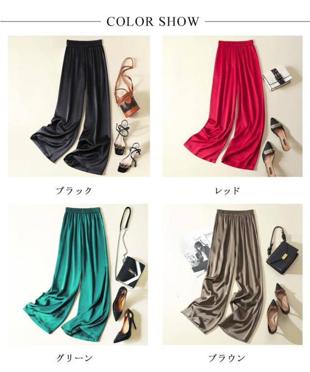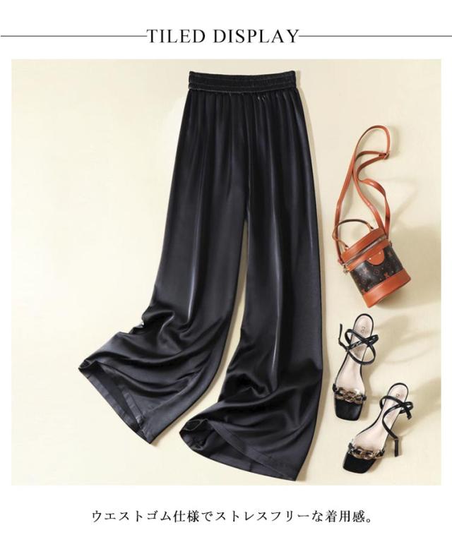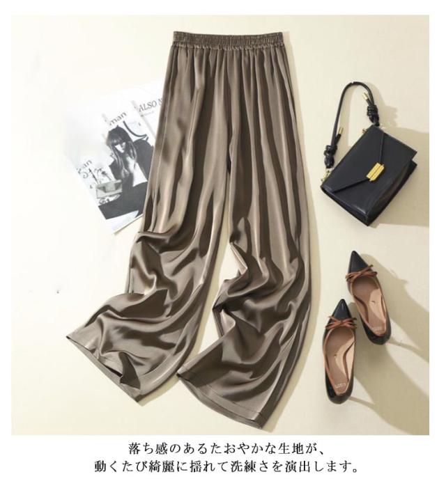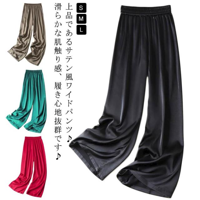 ワイドパンツ サマーパンツ レディース サマーパンツ 着痩せ ロングパンツ 長ズボン 光沢感 サテン調 無地 美脚 ハイウエスト 通勤 ウエストゴム お洒落 体型カバー ゆったり