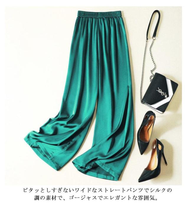| 上品であるサテン風ワイドパンツ♪滑らかな肌触り感、履き心地抜群です♪ ウエストゴム仕様でストレスフリーな着用感。 ハイウエスト&美しい落ち感でまっすぐ美脚シルエットを演出します。 落ち感のあるたおやかな生地が、動くたび綺麗に揺れて洗練さを演出します。 ピタッとしすぎないワイドなストレートパンツでシルクの調の素材で、ゴージャスでエレガントな雰囲気。 ウエストゴムでゆったりしているのでルームウエアとしてもおすすめ。 | |