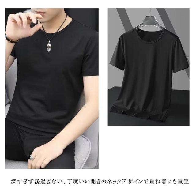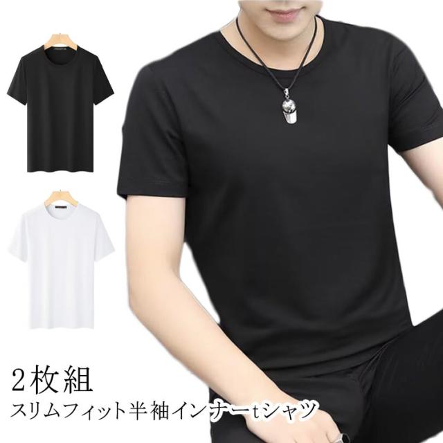半袖tシャツ メンズ スリム 肌着 丸首 Vネック インナーtシャツ 2枚(白+黒) アンダーシャツ ヒートテック 半袖 インナー ヒートインナー ルームウェア インナーシャツ 細身 ストレッチ 無地 薄手 スポーツウェア Uネック