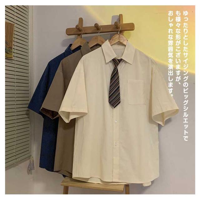 シャツ ストレッチ メンズ ネクタイ付き 半袖シャツ カジュアルシャツ ボウタイシャツ 半袖 メンズ 涼しい 夏 シャツ オーバーサイズシャツ カジュアル 半袖シャツ 五分袖 韓国 ファッション ゆったり シンプル