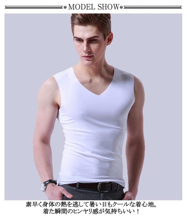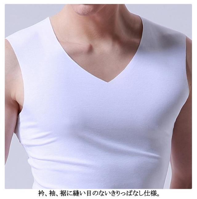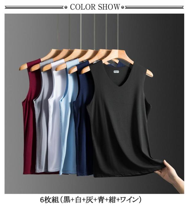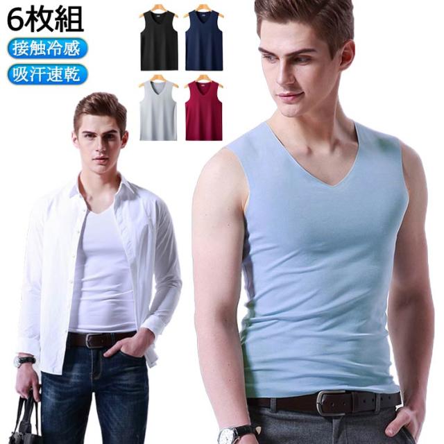 Vネック タンクトップ 吸汗速乾 肌着 インナー シームレス メンズ 下着 インナーシャツ 接触冷感 6枚セット シンプル 通気性 夏 トップス ノースリーブ クール 袖なし ノースリーブシャツ 紳士 男性 透けない