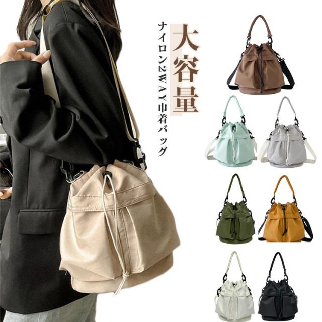ナイロンバッグ 肩掛け 巾着バッグ 2way 斜め掛け ショルダーバッグ バケツ型 メンズ トートバッグ レディース 軽量 絞りトート おしゃれ 旅行 ミニバッグ 大容量 母の日
