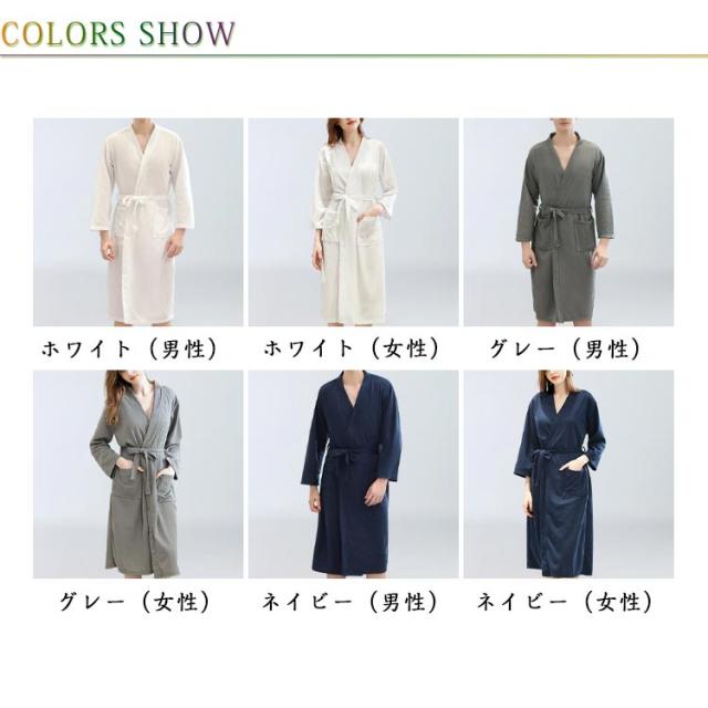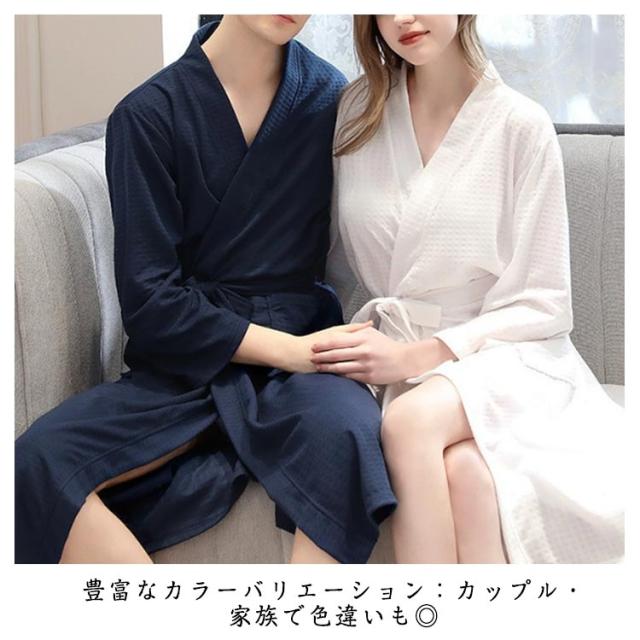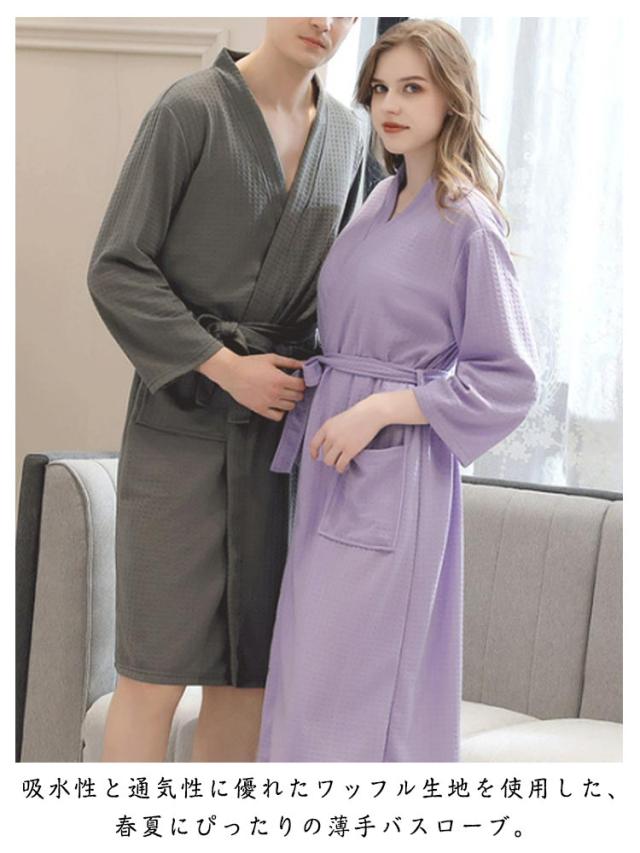 ワッフル生地 ガウン バスローブ ルームウェア メンズ ナイトウェア レディース ゆったり 吸水 ふわふわ 部屋着 無地 薄手 春夏用 ウエストベルト ポケット付き ホテル お風呂上り カップル
