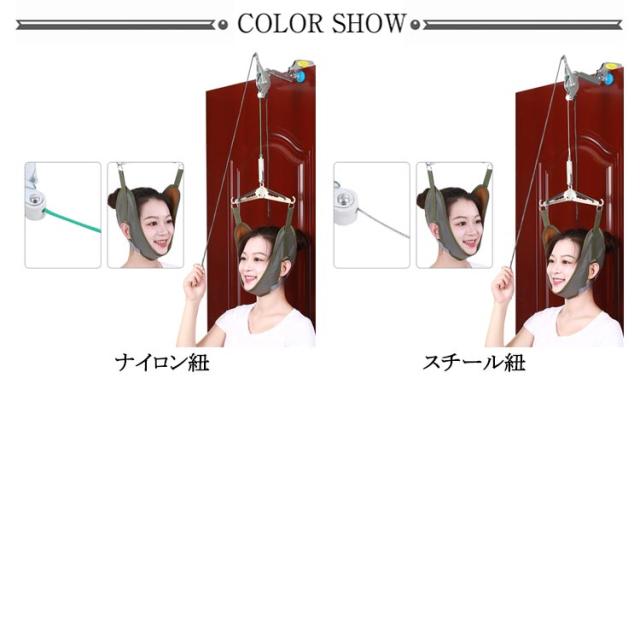 | サイズについての説明 | 【使用方法】本体から出ている紐を引っ張りご自身の力で頸椎を伸ばすだけです。2本出ているグレーの紐をカチカチゆっくり引っ張り、もう片方の紐で引っ張ると解除されて牽引が緩みます。 |