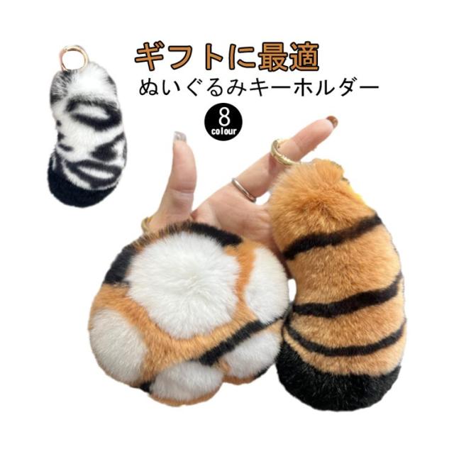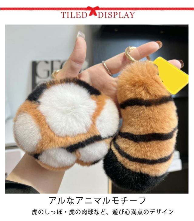 動物 肉球 ぬいぐるみキーホルダー ミニ 虎 キーリング しっぽ ファーキーホルダー バッグチャーム おもしろい アクセサリー ミニ ふわふわ もふもふ おしゃれ かわいい ギャル ギフト