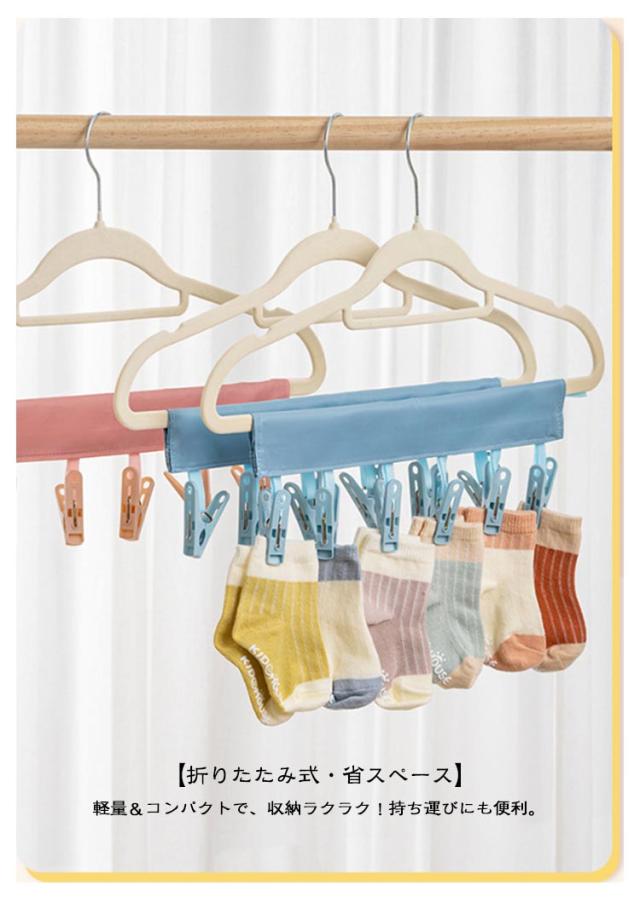 布製 2本セット 物干しハンガー 布製 クリップハンガー 折り畳み ハンガー マジックテープ式 洗濯バサミ 洗濯 物干し 帽子 靴下 下着 ブラジャー おしゃれ コンパクト 携帯便利 旅行