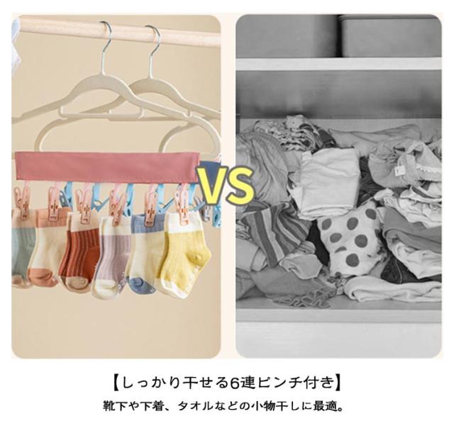 | マジックテープ式ハンガー(ピンチ6個付き) 全14色展開!旅行でも、出張でも、バスルームでも! 小物干しに便利な布製折りたたみハンガー♪ 【折りたたみ式・省スペース】 軽量&コンパクトで、収納ラクラク!持ち運びにも便利。 【マジックテープでしっかり固定】 強力マジックテープで繰り返し使える&ズレ落ちにくい! 【しっかり干せる6連ピンチ付き】 靴下や下着、タオルなどの小物干しに最適。 【安心素材・耐荷重】 安全なPP素材と高耐久な吊り紐を使用。安定感◎ 【水洗いOK!お手入れ簡単】 汚れてもサッと洗えていつでも清潔。 旅行・出張・日常のちょっとした干し物に、大活躍! | |