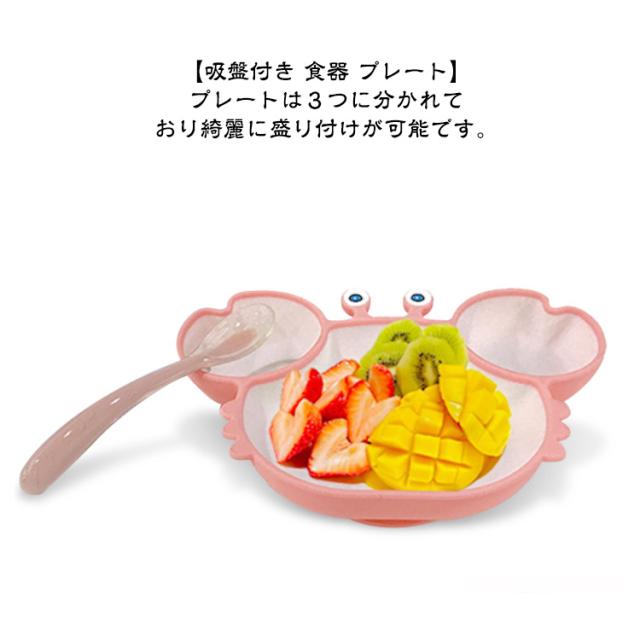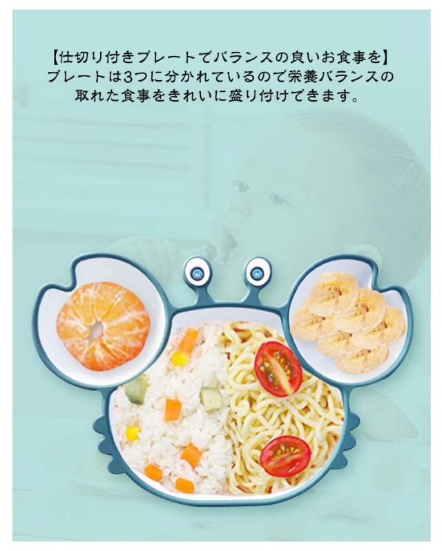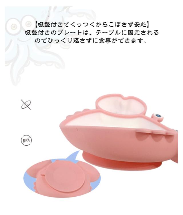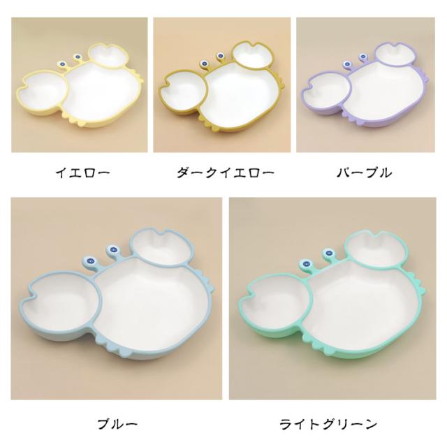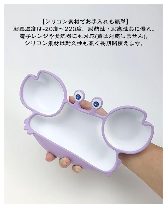| 毎日のお食事に大活躍、お手入れ簡単なシリコンの吸盤付き食器プレートです。【カニ型】 【吸盤付き 食器 プレート】 プレートは3つに分かれており綺麗に盛り付けが可能です。 【吸盤付きでくっつくからこぼさず安心】 吸盤付きのプレートは、テーブルに固定されるのでひっくり返さずに食事ができます。 【赤ちゃんの健康を守る品質を最優先】 赤ちゃんの食事で使う製品だからこそ高品質で安全性が高い素材を使用しています。 【自分で食べる練習にぴったりの独自設計】 スプーンですくいやすい深めのプレート。 お子様が自分で食べる練習にもなるように一般的なベビーディッシュより深めの2.5cm設計にしました。 また、プレートは手前が直線にカットされたデザインなので体に引き寄せて食べこぼしを最小限にします。 【仕切り付きプレートでバランスの良いお食事を】 プレートは3つに分かれているので栄養バランスの取れた食事をきれいに盛り付けできます。 【シリコン素材でお手入れも簡単】 耐熱温度は-20度〜220度。耐熱性・耐寒性共に優れ、電子レンジや食洗器にも対応(蓋は対応しません)。シリコン素材は耐久性も高く長期間使えます。 | |