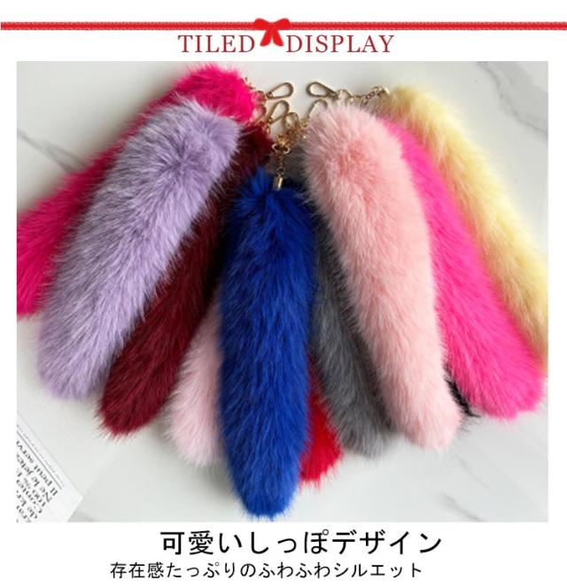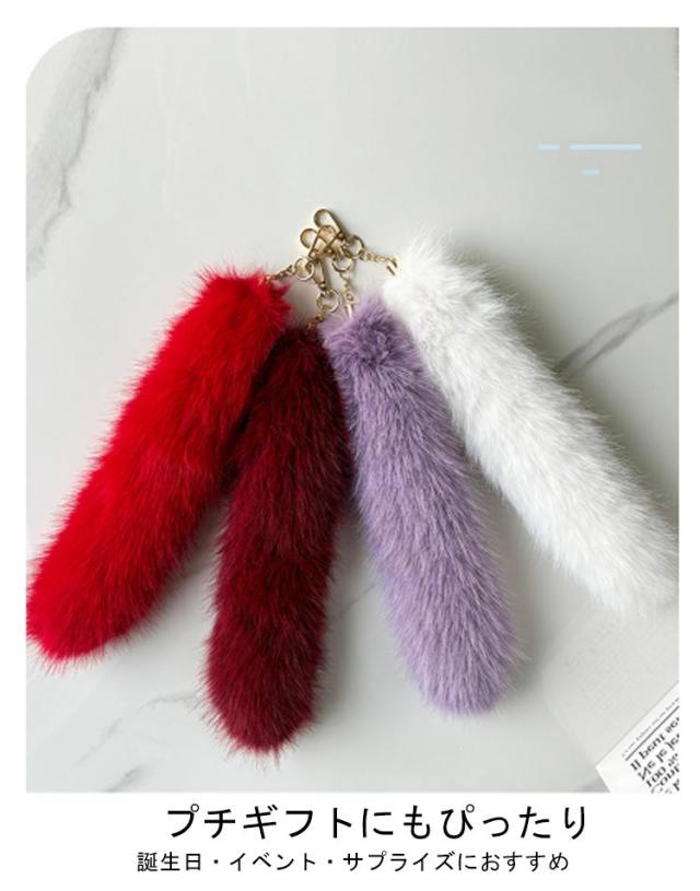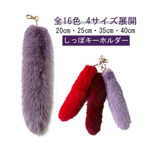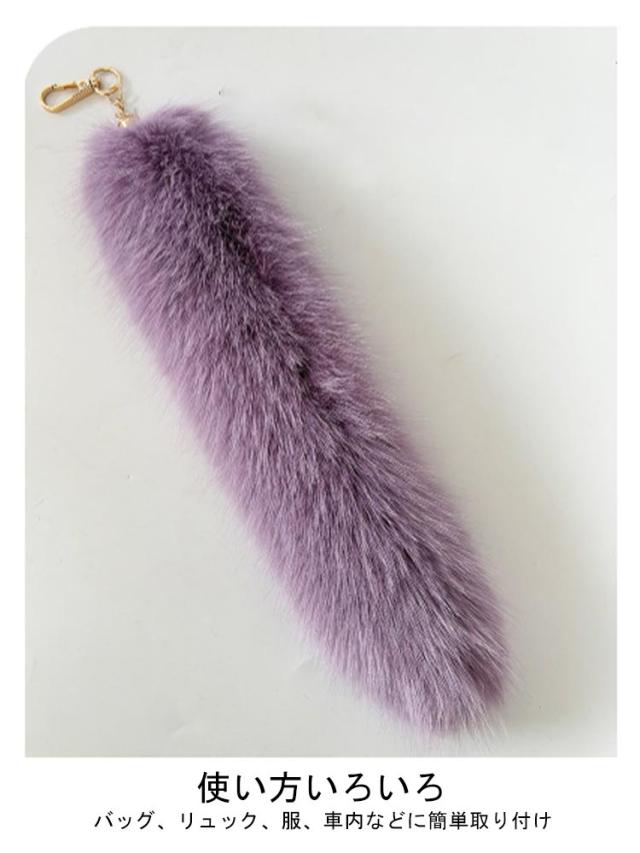 しっぽ ミニ キーホルダー 尻尾 大きめ カラフル ファー キーホルダー かわいい 小さめ ギャル バッグチャーム ふわふわ フェイクファー フォックスしっぽ ファーストラップ ミニ 紫 白