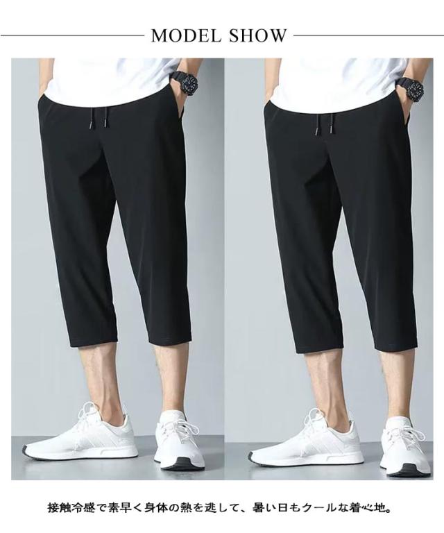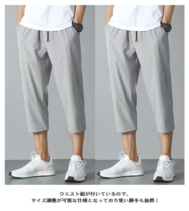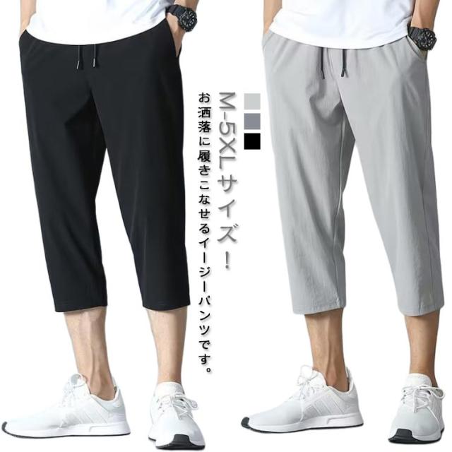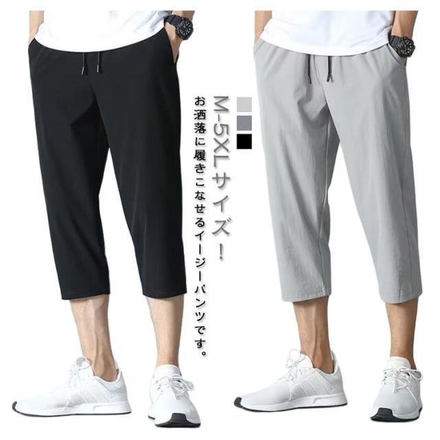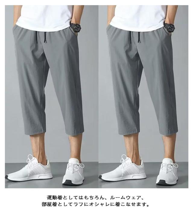 クロップドパンツ 接触冷感 涼感パンツ 7分丈 ハーフパンツ スポーツパンツ メンズ 短パン クロップドパンツ イージーパンツ 大きいサイズ 吸水速乾 通気性 半ズボン スウェットパンツ 夏物 エアパンツ