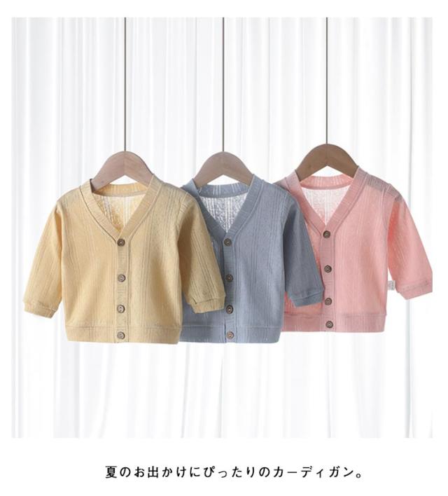 ニットカーディガン 綿 赤ちゃん ベビー服 UVカット ベビー 女の子 サマーカーディガン カーディガン キッズ 男の子 夏 子ども服 長袖 薄手 冷房対策 紫外線防止 おしゃれ ベビー かわいい 涼しい 日焼け止め vネック 羽織り