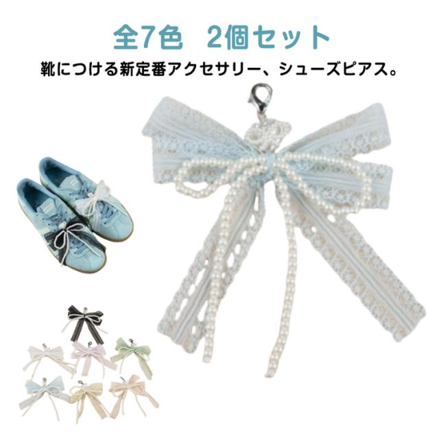 レース シューピアス 全7色 パール 韓国 おしゃれ 女性 シューアクセサリー スニーカーアクセサリー 2個セット 靴 アクセサリー リボン 靴 靴ひも シューズピアス スニーカーデコ シューパーツ シューチャーム バレエコア シューピアス 可愛い ガーリー