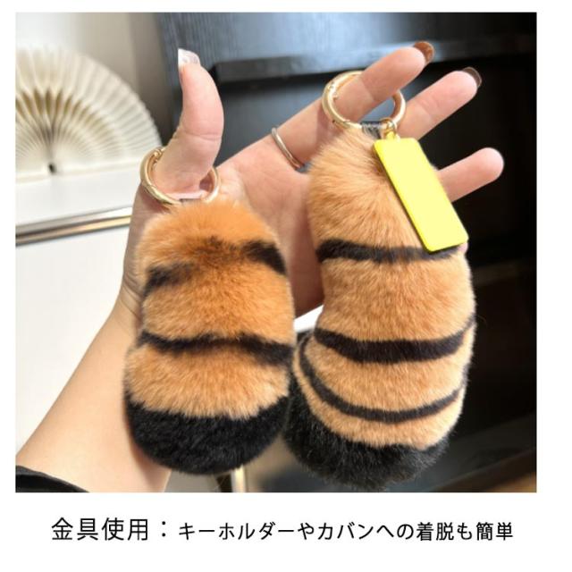 バッグチャーム キーリング ぬいぐるみキーホルダー バッグ飾り 動物 虎 ミニ ファーキーホルダー ふわふわ しっぽ ミニ おもしろい アクセサリー もふもふ おしゃれ かわいい ギャル ギフト