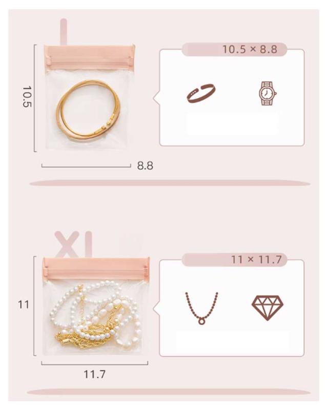 | 透明ジュエリー袋(10枚入り) サイズ別に収納できる便利なセット♪ 酸化防止で大切なアクセサリーをしっかり守る! 高密封ジップ&二重構造で空気・湿気・菌の侵入を防止。長く美しさをキープ。 透明素材で中身が一目瞭然! サイズ別収納でアイテムにぴったり Sサイズ:リング・ピアスなどの小物に Mサイズ:イヤーアクセ・細身のブレスレットに Lサイズ:バングル・腕時計に XLサイズ:ネックレス・ペンダントにぴったり 防水・防湿仕様で安心保管 柔らかい素材で傷もつきにくく、旅行や持ち歩きにも◎ | |