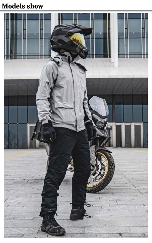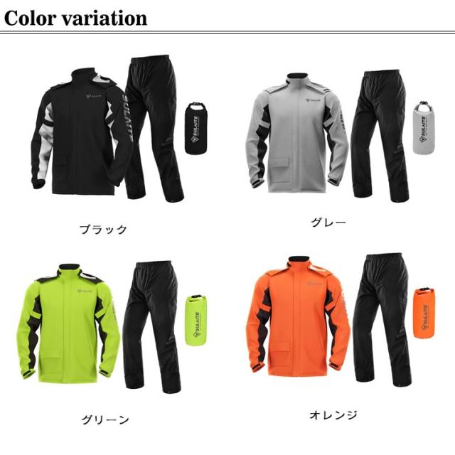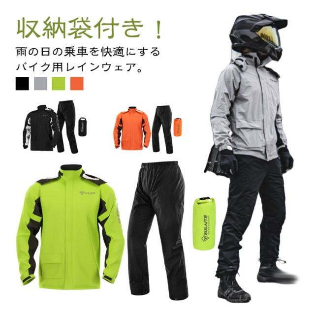 | 収納袋付き!雨の日の乗車を快適にするバイク用レインウェア。 高い防水力(耐水圧:15000mmH2O)で雨風を防ぎます。 | |