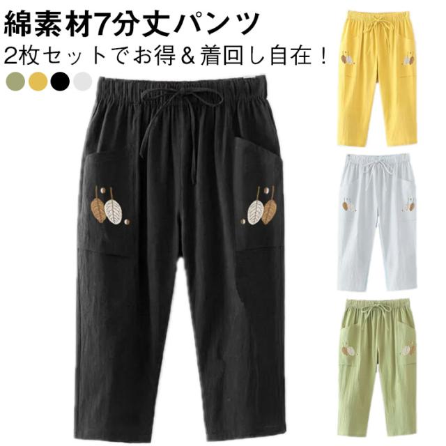 レディース イージーパンツ パンツ 綿素材 7分丈パンツ 夏用 【2本セット】大きいサイズ ウエストゴム 【2本セット】大きいサイズ カジュアルパンツ 体型カバー L 2L 3L 4L 5L