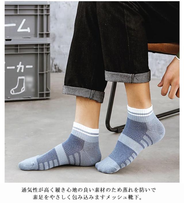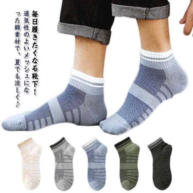 ショートソックス メンズ 靴下 メッシュ 5足セット くるぶしソックス 春夏 涼しい 蒸れない ソックス 綿 薄手 男性用 紳士用 ショート スニーカーソックス ランニング ゴルフ靴下 吸汗速乾 通気性 おしゃれ スポーツ くつした フリーサイズ 送料無料
